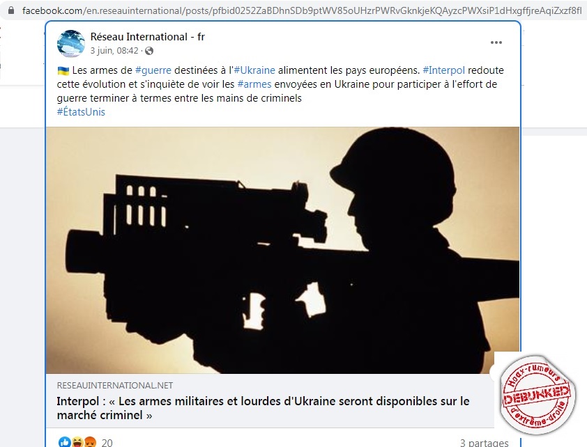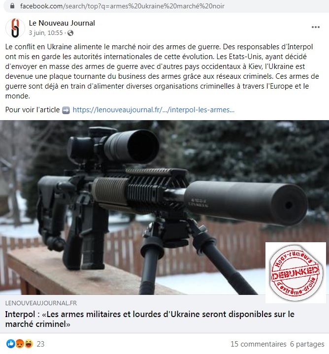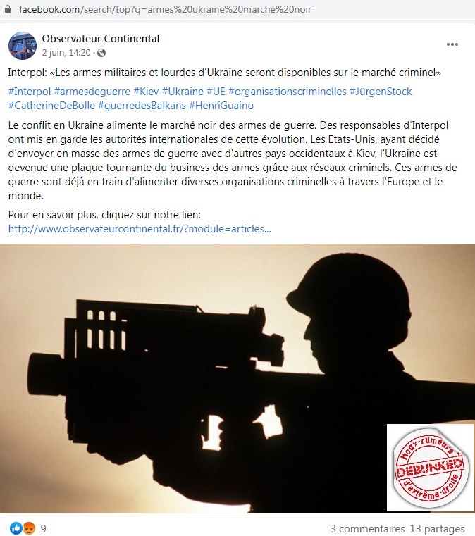 On voit très bien où ces deux organismes de propagande veulent arriver: -Seules les armes envoyées en Ukraine sont concernées -Seule l’Ukraine est concernée (mais pas la Russie) -L’occident (en particulier la France) sont au bord de la guerre civile -Si vous armez l’Ukraine ces armes finirons dans les mains de ceux qui veulent la guerre civile