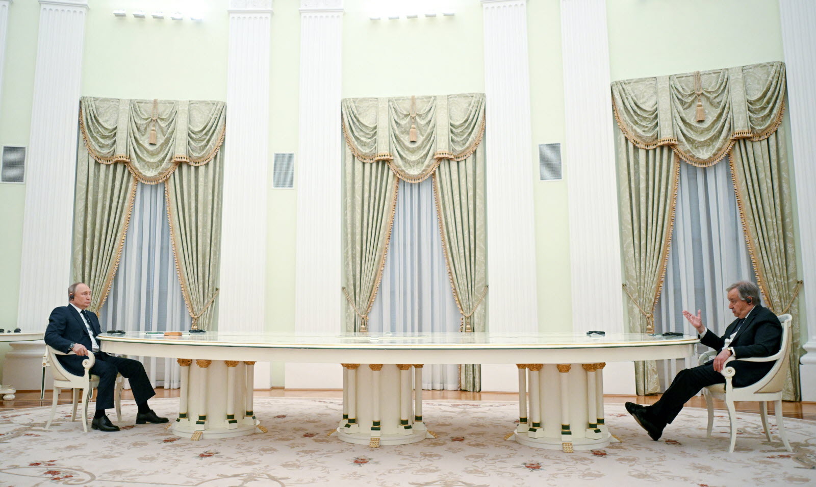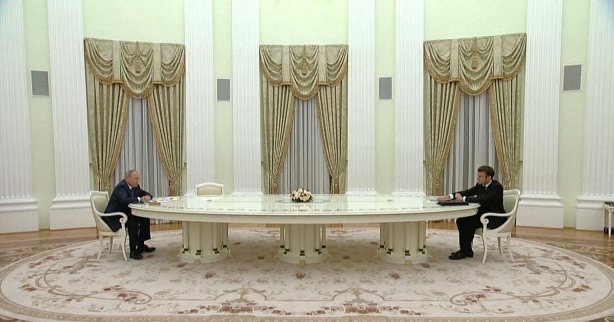 Le premier point rappelle en effet ces photos qui illustrent sans aucun doute la glaciation des rapports Poutine/Macron/Guttierez: