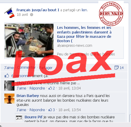 Le « scoop » avait été diffusé aussi sur facebook, par un certain nombre de pages lepénistes. On peut être certain qu’ils ne publieront aucun démenti. Et nous vous laissons apprécier leurs réactions, leur ouverture d’esprit :