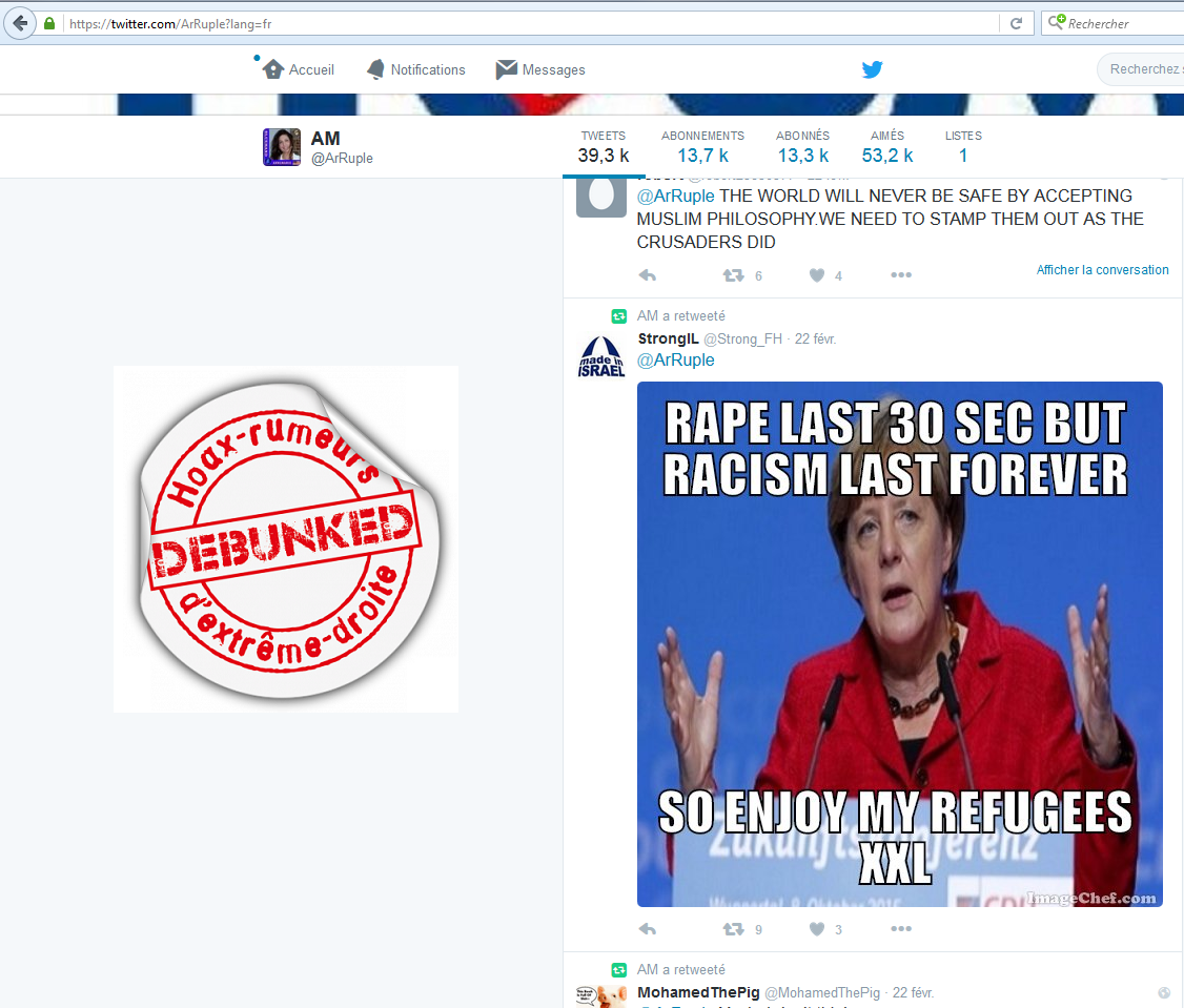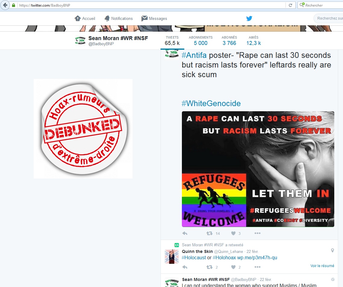 C’est ainsi que cet infaux va tout naturellement infuser dans le twitter français pour atterrir dans les bacs de nos fachos bien de chez nous qui n’ont plus qu’)à se servir: