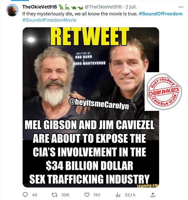 « Mel Gibson serait en train de réaliser une série documentaire en 4 parties sur le marché mondial du trafic sexuel d’enfants de 34 milliards de dollars impliquant des pays comme l’Ukraine », écrit-il. Le tweet a été vu plus de 4 millions de fois et des dizaines de milliers de personnes ont aimé, commenté et retweeté la nouvelle.