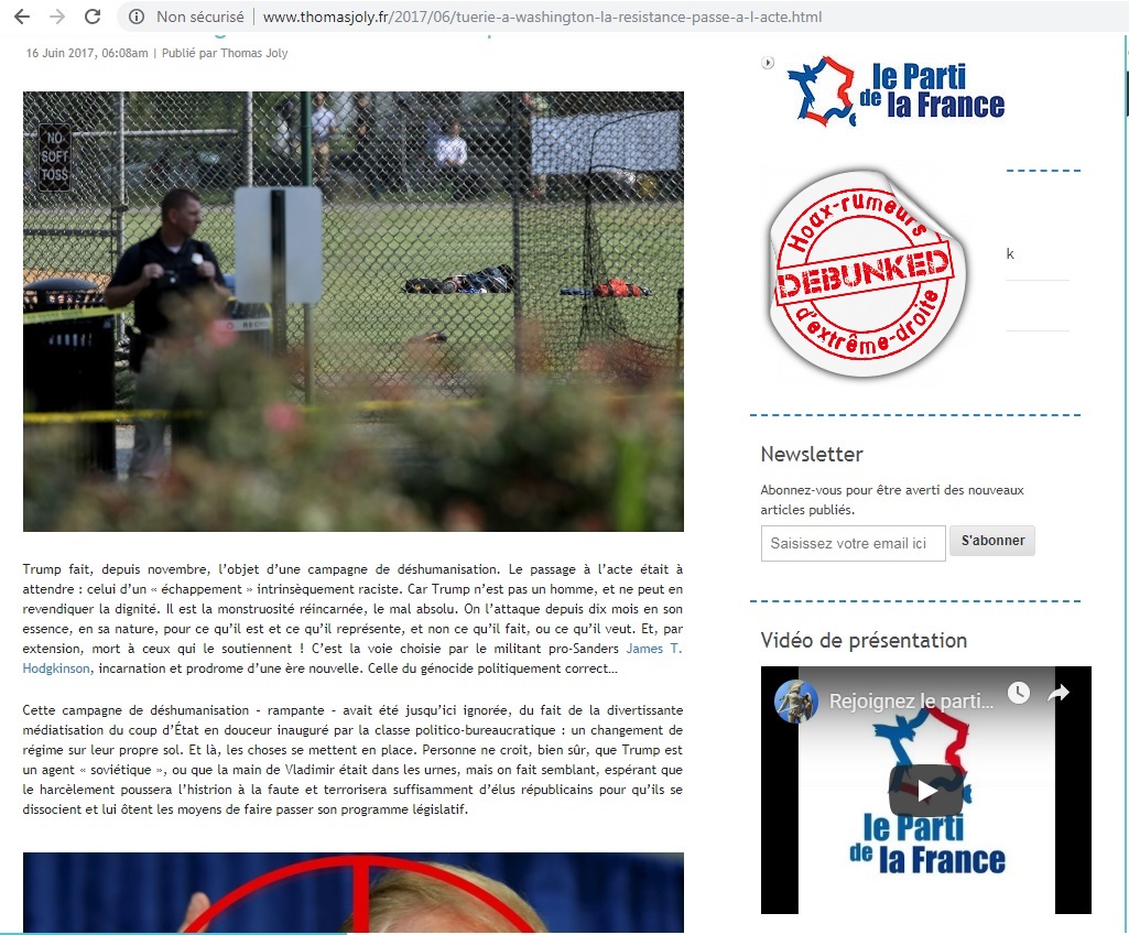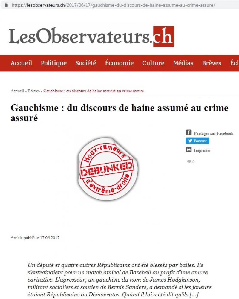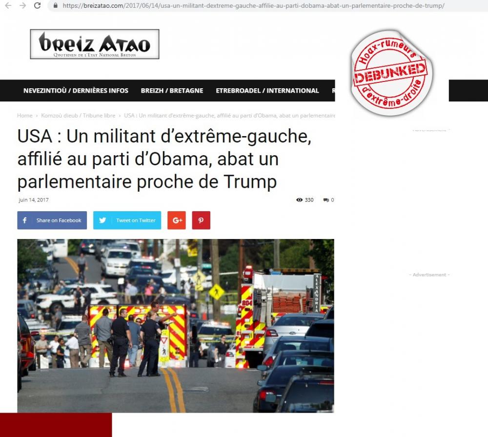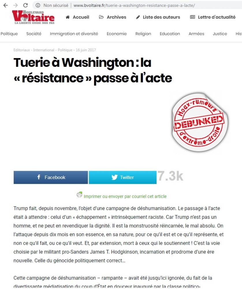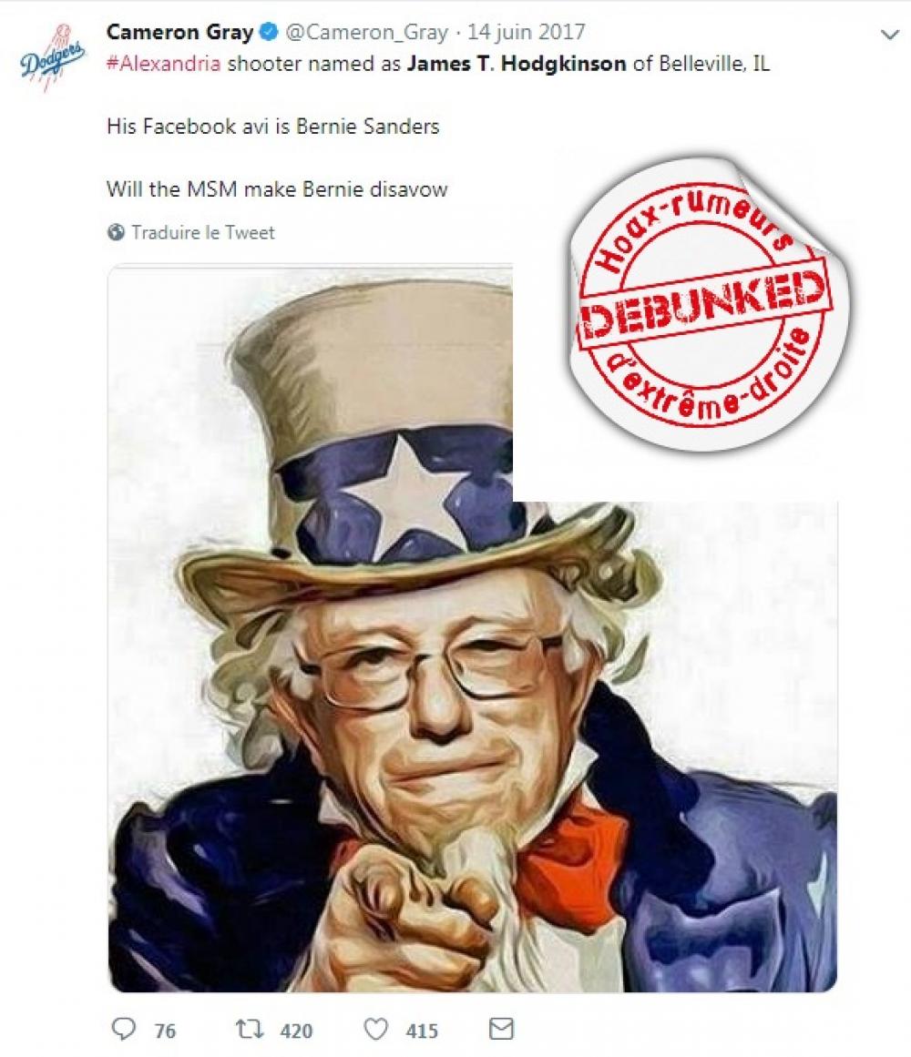 L’argumentation de Trump (et de Fdesouche) ne semblent guère probantes au vu de ce que nous avons trouvé. En effet, les réseaux sociaux grouillent de réactions complotistes et de récupérations politiques au moment du récent attentat de Washington commis par « James T. Hodgkinson ». Il n’y a même que l’embarras du choix…