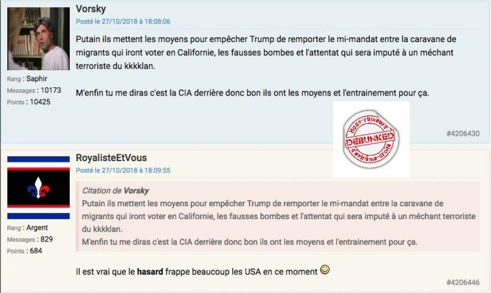 On pouvait s’y attendre. Avec  ces deux crises terroristes coup sur coup aux USA, à quelques jours de l’élection de mi-mandat, la fachosphère et les ultra conservateurs du GOP ne pouvaient pas rester silencieux.