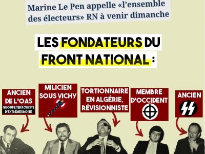 Récemment, nombreux sont d’anciennes « personnalités » de gauche qui ont rejoint ou le RN ou bien sont parti grenouiller dans leur coin avec leur propre formation fascistoide. On pourrait citer Frédéric Bort, Maxence Laurent, Andréa Kotarac, Gilbert Collard (passé successivement de la gauche, au centre, à la droite, puis au RN et enfin chez Zemmour; un exemple de retournement de veste et de changement d’idées), Georges Kuzmanovic, ou encore Tatiana Ventôse…