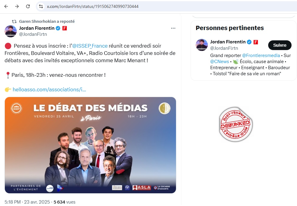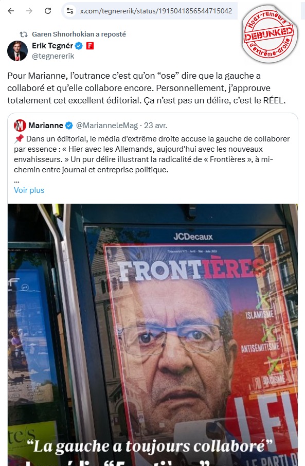 « Frontières », anciennement « Livre Noir » est un média d’extrême droite. Nous en parlions brièvement ICI. Et la prédiction était bonne, Livre Noir a bien implosé pour donner naissance à Frontières. Nous y reviendrons d’ailleurs plus tard sur un point du debunkage qui nous intéresse aujourd’hui. Loin de la neutralité entre partis de certains de ces médias, lui soutient ouvertement Zemmour et sa ligne. D’ailleurs plusieurs de ses plumitifs sont candidats chez « Reconquête ».
