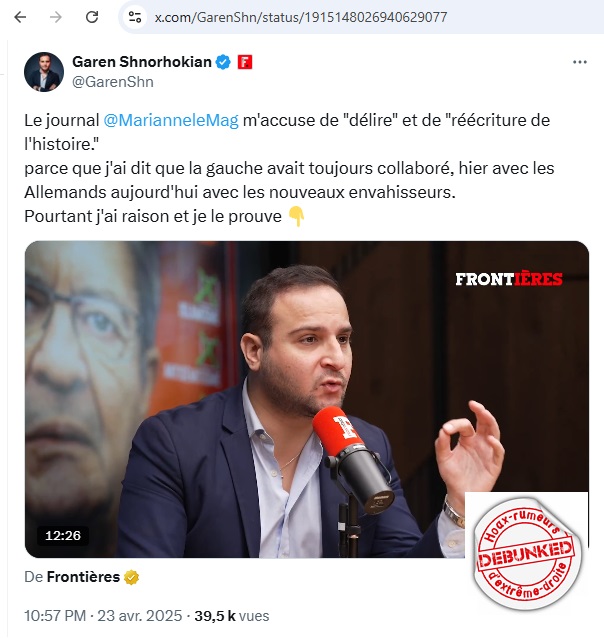 Et pire encore, loin de nettoyer leur passé, ils tentent de le réhabiliter. Et c’est très exactement ce que fait Frontières/Shnorhokian dans cette tentative. En même temps, c’est dans les gènes de Reconquête et de Zemmour qui tente depuis des années cette opération.