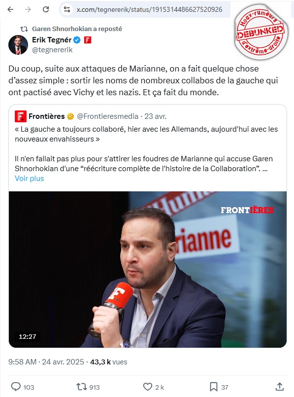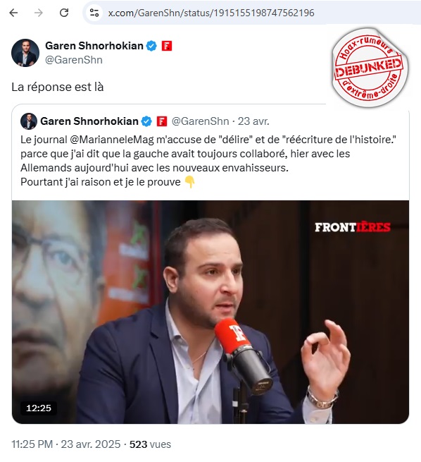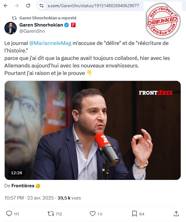« La gauche a toujours collaboré, c’est dans son essence même. Hier avec les Allemands, aujourd’hui avec les nouveaux envahisseurs. »