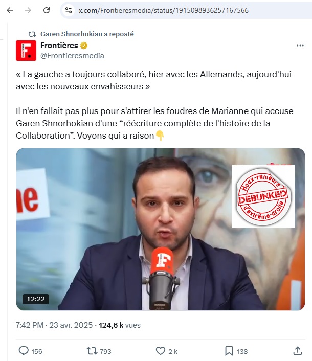 le « média » fascisant « Frontières publie un article, pardon, commet une bouse, sous la plume de Garen Shnorhokian et dont voici la partie qui nous intéresse: