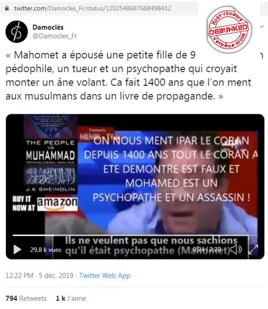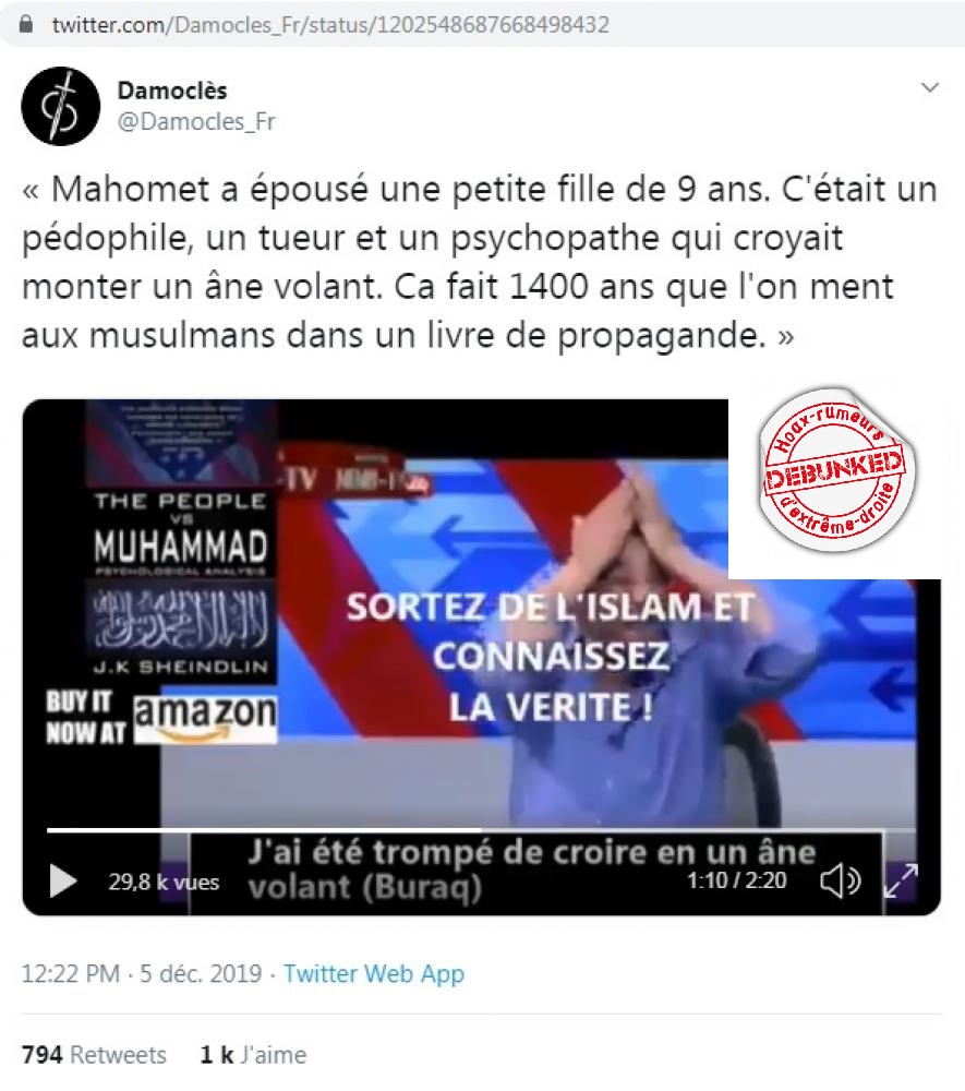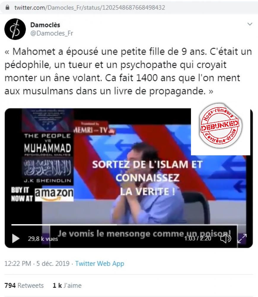 Et il ne déroge pas à nouveau à cette règle. Sur son compte twitter damoclès a publié une vidéo sous titrée très étonnante. On y voit un homme vociférer en arabe au point qu’il en perd son souffle. Or d’après les sous titre qu’en met damoclès, cet homme serait en train de critiquer l’Islam de façon radicale, violente. Accompagné d’un commentaire tout aussi radical de Damoclès.