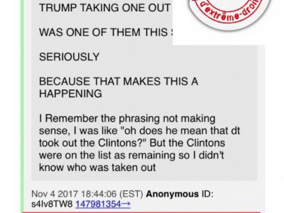Si Trump gagne, ses partisans QAnon verront cet événement comme le « signe divin » qu’il est temps de « nettoyer le marais », et donc d’ouvrir le feu sur les opposants. Si Trump perd, ses partisans verront cet événement comme le signe que le « Deep State » (« l’Etat profond »), la « Cabale », est en train de gagner et se sentiront investis d’une « mission divine », et donc tenus d’ouvrir le feu sur les opposants.