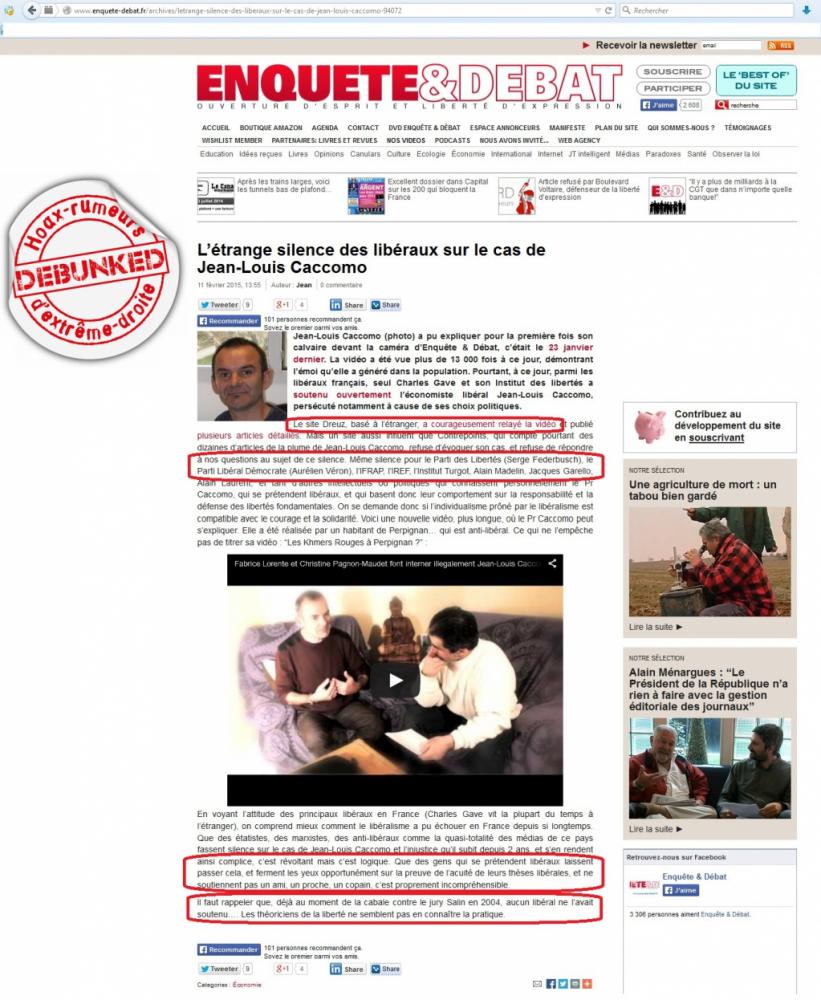 Rappelons que les soutiens à M. Caccomo émanent principalement de trois entités : Dreuz/E&D/ et l’ « institut des libertés » (tous ultra-libéraux voire libertarien ).