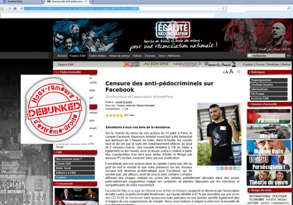 - https://www.debunkersdehoax.org/affaire-possible-de-pedophilie-a-joue-les-tours-curieux-comportement-de-la-soralodieudosphere/