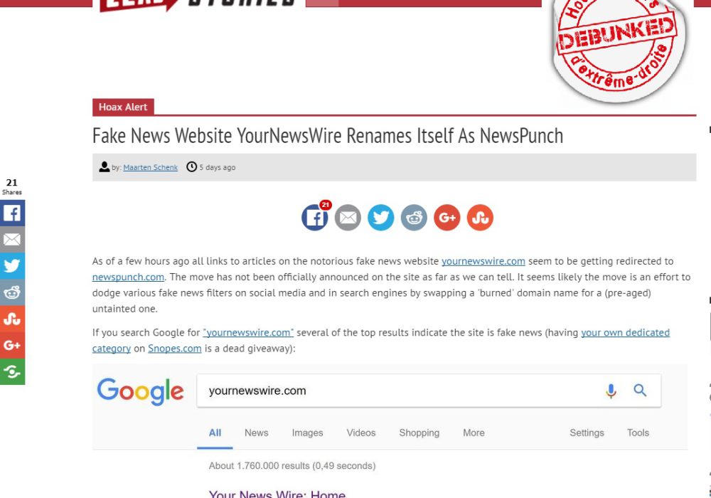 Ce site apparemment nouveau ne l’est pas du tout, c’est un ancien site bien connu de la fachosphère complotiste « YourNewsWire » qui vient de se renommer: