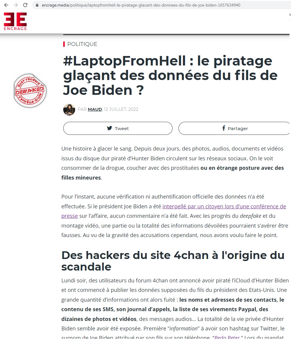 Sauf que comme lors de l’affaire très récente « Fact’n’Furious », à nouveau, c’est « Beaucoup de bruit pour rien ». On peut s’indigner de la censure de twitter sur l’affaire du laptop, ca n’en fait pas une affaire véridique.