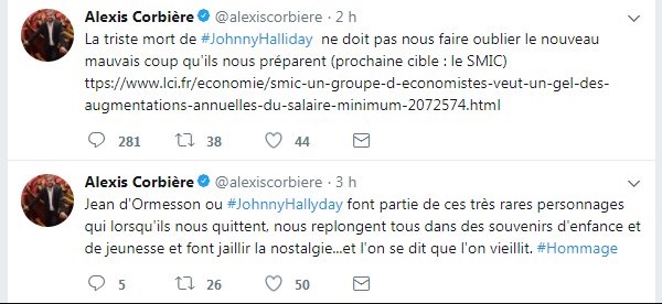 Une heure avant de publier son « tweet polémique » (nous on ne voit pas en quoi c’est polémique, d’ailleurs), Corbières publie un autre tweet: