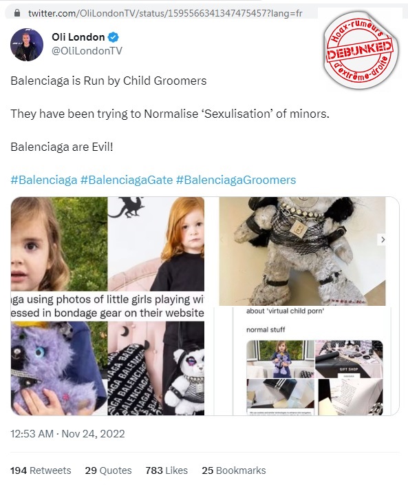 « Aux États-Unis notamment, pays très marqué par la religion, certains n’hésitent pas à parler de satanisme et viennent même jeter avec l’eau du bain le travail de Lotta Volkova ancienne styliste de Vetements, qui a longtemps fait parti des proches de Demna Gvasalia. Alors qu’elle n’a jamais collaboré à aucune une campagne Balenciaga, la styliste s’est vue associée à la polémique via la diffusion à grande échelle de plusieurs images tirées de son compte Instagram. »
