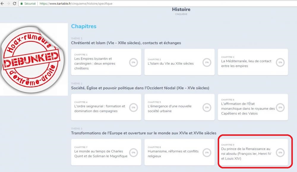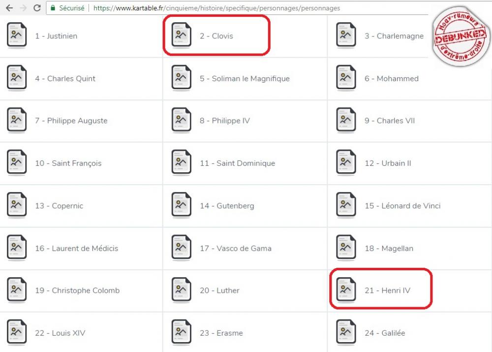 DEUX MINUTES de recherche sur le site de l’éducation nationale aurait permis à Düff de trouver que son baratin était faux. Sur le site « Kartable » on retrouve sous forme de tableau le résumé du programme d’histoire de cinquième . Avec celui-ci et un autre issu du même site sur les personnalités historiques étudiées en cinquième, on démonte très facilement l’inculte (et très fainéant) Düff: