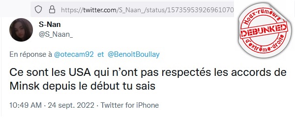 Or c’est faux à plusieurs titres. Tout d’abord, parce que le contexte historique concernant la pression militaire, diplomatique, économique et de la propagande russe sont totalement ignorées dans cette assertion. Deuxio, parce que les antécédents de rupture unilatérale de traités avec les russes est également ignorée. Troisio parce que les textes des protocoles de Minsk I et II ne concernent pas que l’histoire de l’autonomie du Donbass, mais tout un train de recommandations que la Russie n’a jamais respecté. Et pour cause comme nous venons de l’expliquer!