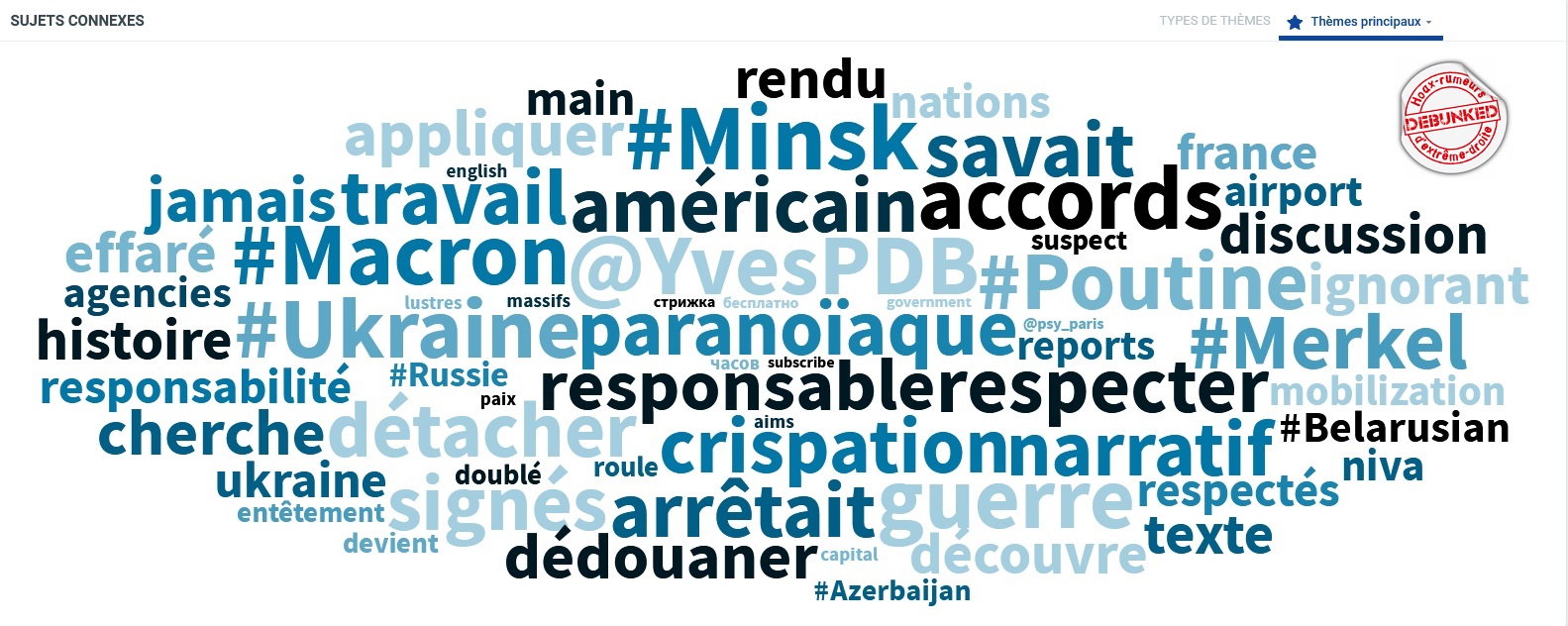 C’est tout à fait remarquable. A ce jour, la seule explication que nous ayons est que la France étant signataire de Minsk II, l’intérêt s’en trouve décuplé. Mais cela n’explique pas, la différence avec l’Allemagne, aussi signataire. On peut supposer que la propagande du Kremlin s’est concentrée sur ce sujet en raison de spécificités de l’audience française déterminée par leurs services de renseignements. Complotiste? Guère probable au vu de la puissance du softpower russe sur notre pays.