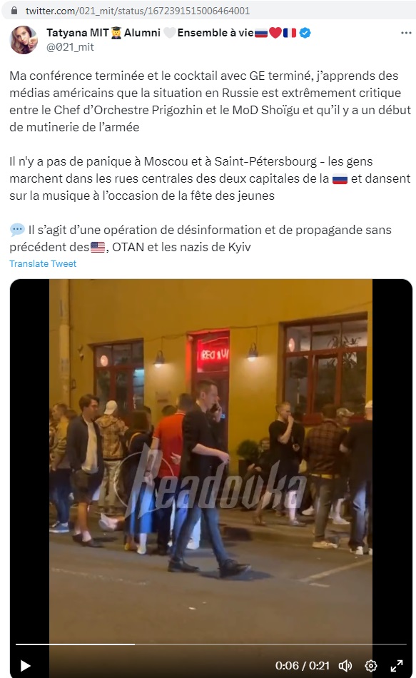 Toute une flopée d’autres vidéos l’accompagnent, une famille occidentale mourant de froid en hiver, faute de gaz russe; la famille russe émigrant et réalisant COMBIEN la vie en Russie en meilleure; le « wokisme » etc… Bref, tout un arsenal de clips censés monter la supériorité de la vie en Russie.