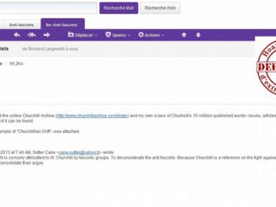 « je ne trouve aucune référence à ce commentaire qu’aurait prononcé Churchill dans les archives Churchill en ligne, et je dois admettre que ceci n’a guère de sens pour moi. Ça n’a pas beaucoup de sens, lorsque l’on y réfléchis. Pourquoi aurait il dit cela à propos des anti fascistes? »
