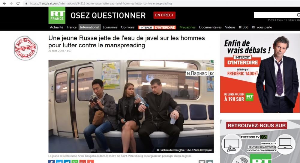 Aviez vous vu cette vidéo virale? Une jeune « activiste » russe luttant contre le « manspreading » en Russie. Celle-ci n’ayant pas froid aux yeux aspergeait l’entrejambe de Russes à l’eau de javel.