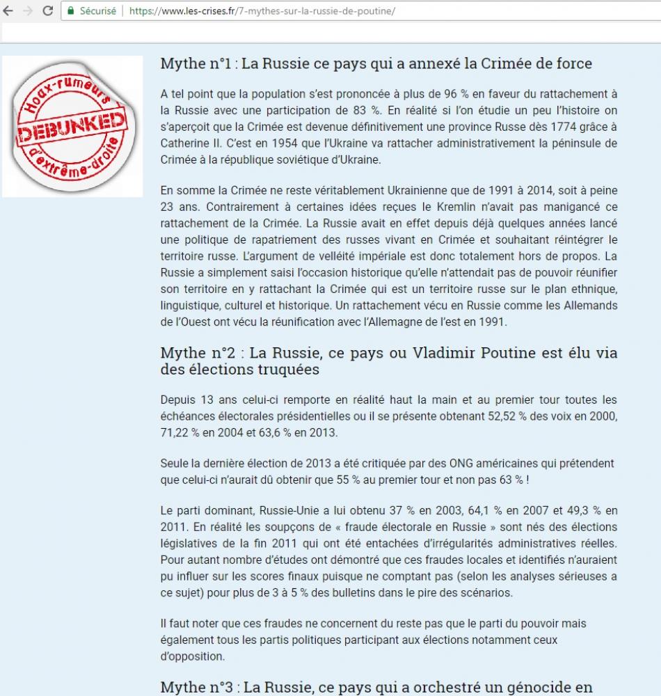 Ils viennent souvent de la propagande officielle russe. Comme cet article de « Sputnik » repris aussi bien par « Médiocrité et consternation », que le blog du très complotiste Berruyer.
