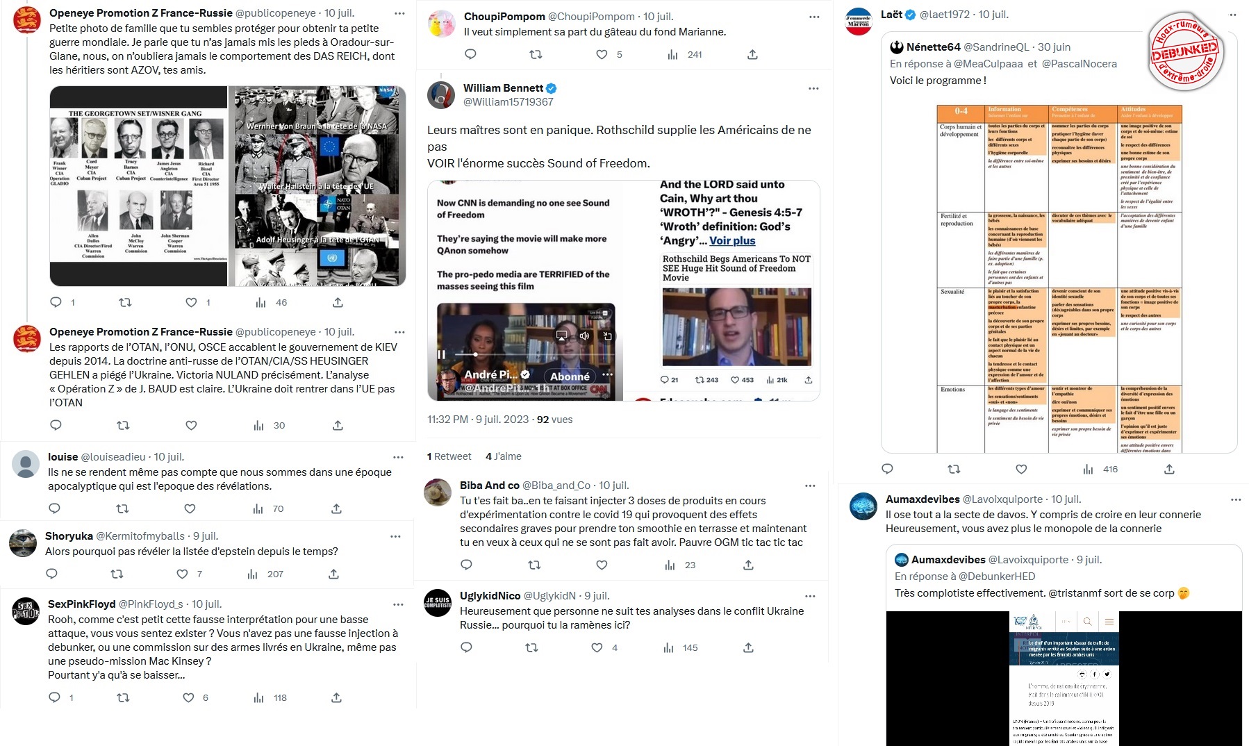 Avec la sortie du « filmenteur » complotiste « Sound Of Freedom », nous avons analysé dans un article la propagande autour de cette oeuvre, son contexte politique et l’escroquerie de l’organisation de Tim Ballard: « Operation Underground Railways » (OUR). Vu le battage dans la complosphère autour de celui-ci et la publicité faite, nous n’avons guère été étonné de le voir repris et fortement critiqué chez leurs plus ardents défenseurs. Ce qui a été le déclic a été d’un coté la citation de notre article par Tristan Mendès France (que nous remercions au passage) et d’une lectrice (que nous remercions également) qui a vigoureusement défendu son point de vue chez une des stars fascisantes complotistes de « TPMP« : Béatrice Rosen. Puis venue à son secours un peu plus tard, une autre star des médias dominants de la Bollorésphère: Myriam Palomba. Apparition furtive, mais tout de même. Entre complotistes bouffant à la même gamelle, on se soutient. Et nous n’avons pas été déçus: un véritable « shitstorm » sans queue, ni tête. Ou à ce qu’il semble au premier abord.